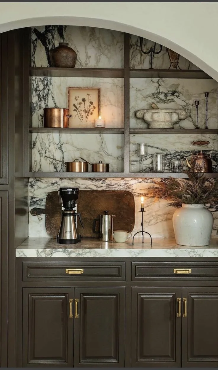 Transitional style is highly effective because it’s neither too modern, risking becoming dated quickly, nor too traditional, which can feel old-fashioned. The image illustrates how vintage pieces can be seamlessly incorporated into a more modern setting, creating an interior that feels lived-in, cosy, and unique.